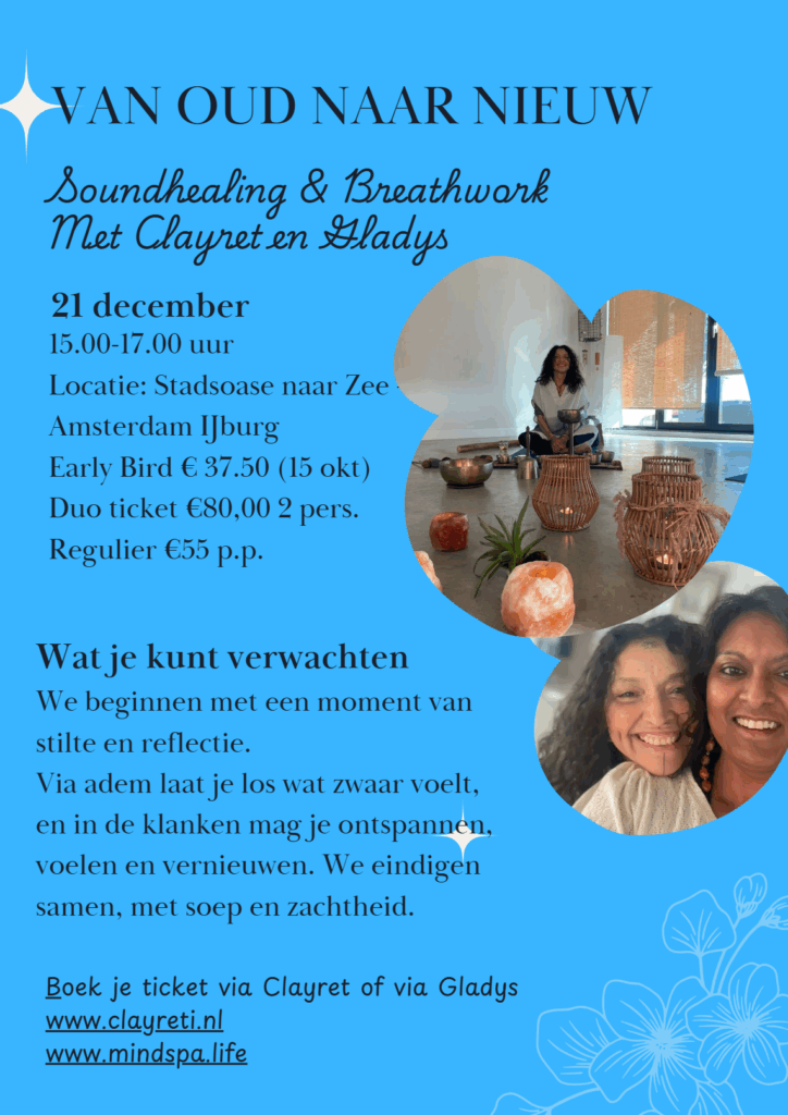 Een klankschaalsessie duurt 90 minuten en vindt plaats in Amsterdam. Er kan gekozen worden voor: